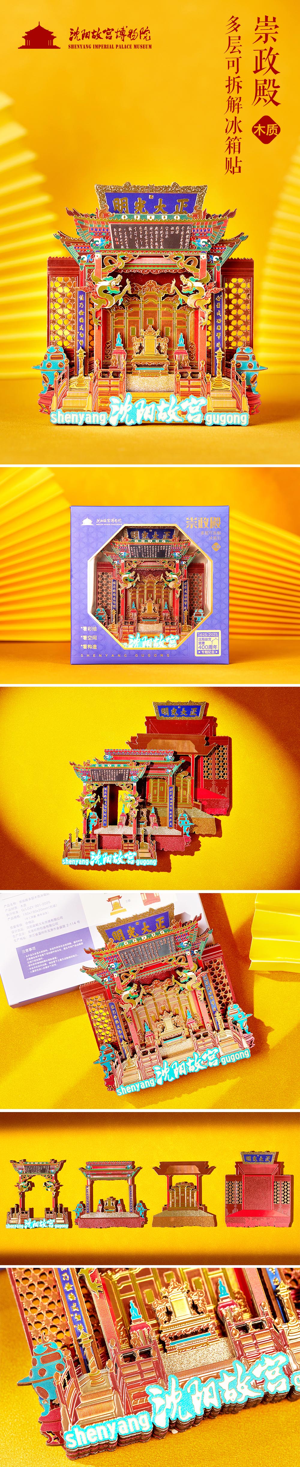 沈阳故宫崇政殿多层木质冰箱贴